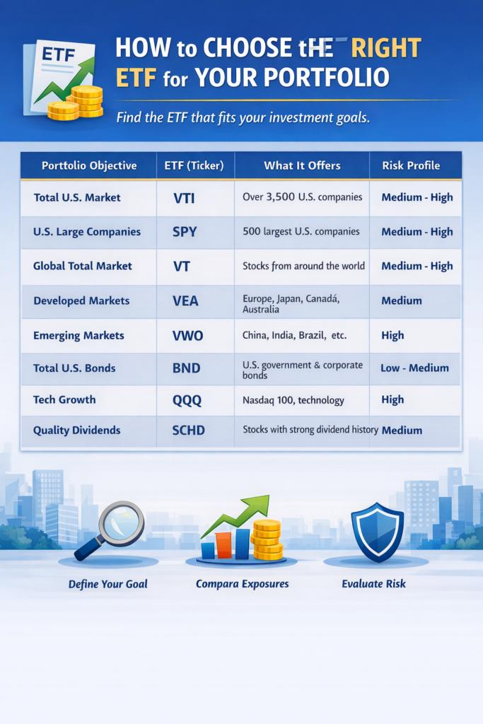 Choosing the right ETF isnโt about finding the hottest ticker or the one with the flashiest theme. Itโs about understanding what role that ETF plays inside your portfolio. When I stopped asking โWhich ETF is best?โ and started asking โBest for what?โ my decisions improved immediately.