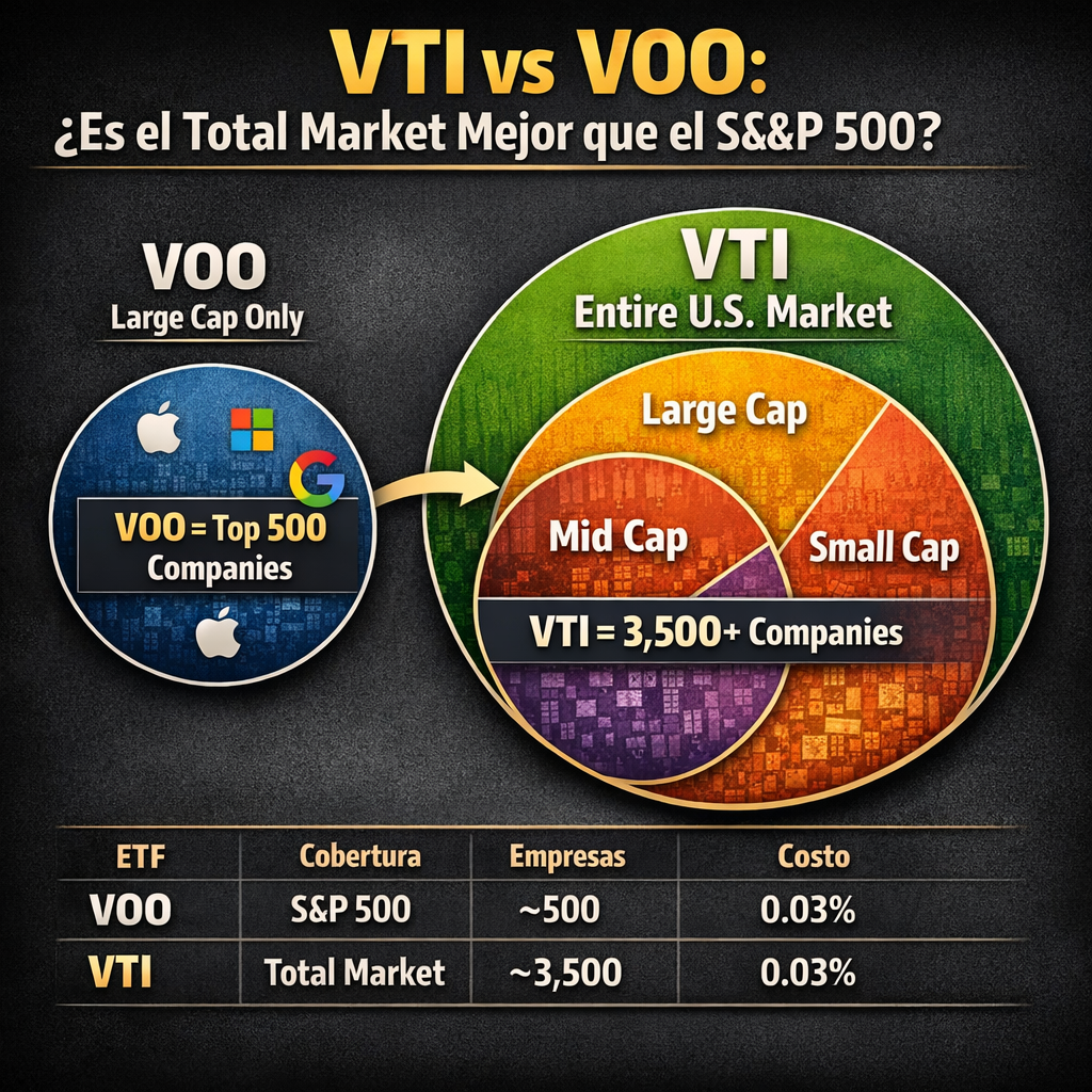 | Caracterรญstica | VTI (Total Market) | VOO (S&P 500) |