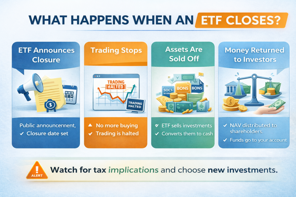Third, delisting. After the final trading day, the ETF stops trading on the exchange. If you still hold shares, you cannot sell them in the open market anymore. You simply wait for the liquidation process to complete.